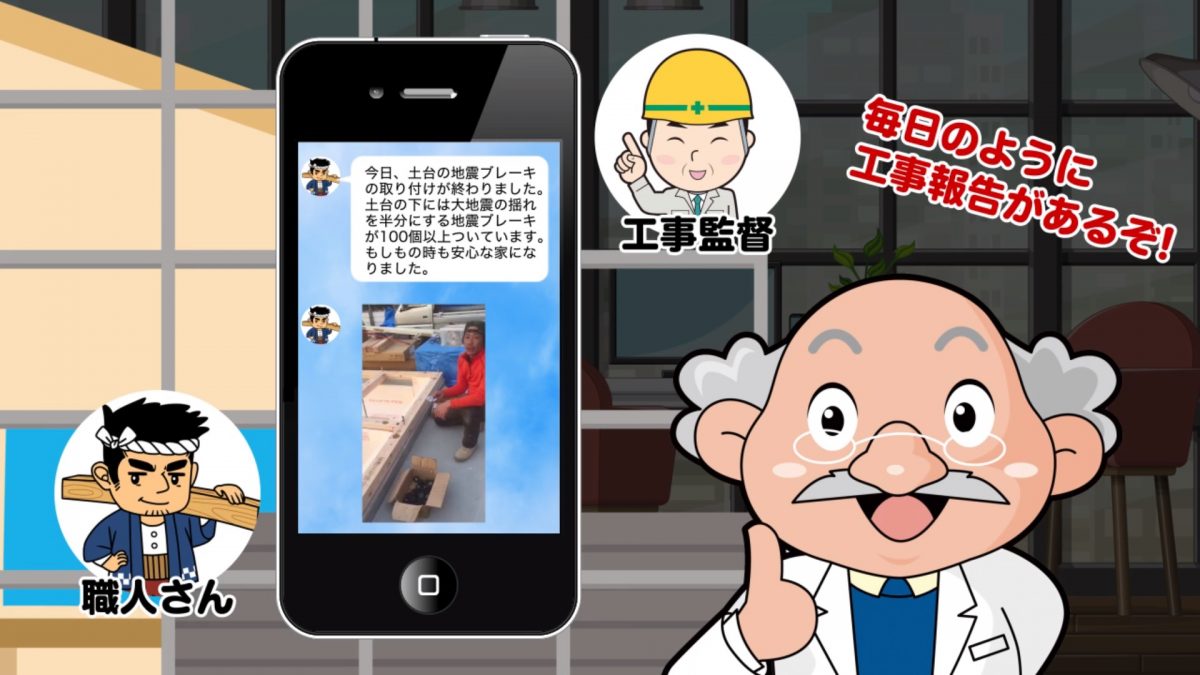 お施主様👨👩👦👦からも、「便利」「トラブルがない」「工事報告が動画で届くので、現場に行かなくても良く分かる」「建てた後のアフターサービスも安心」 とても喜ばれているSNS打合せ方法、アニメ📺でご覧ください。